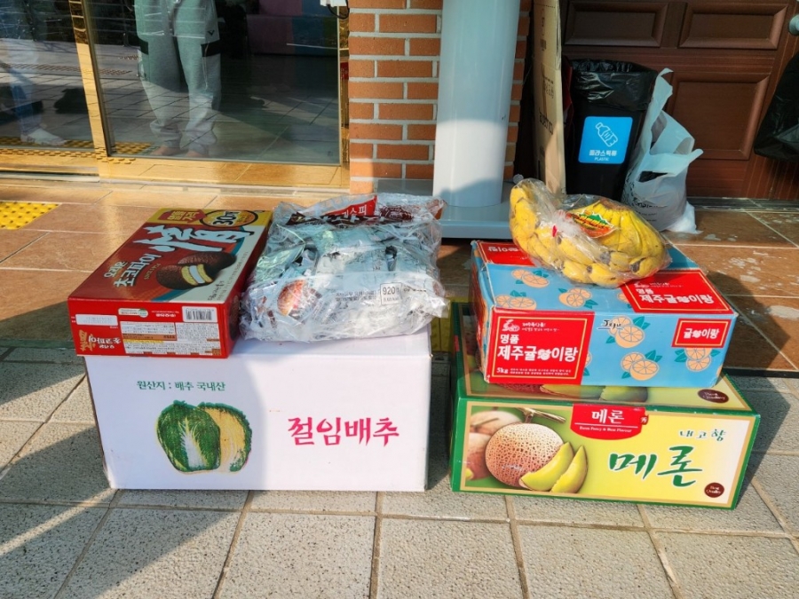 외산 반교교회에서 바나나, 귤, 메론, 김치, 쌀과자, 초코파이를 후원해주셨습니다. 후원 감사합니다 ^^