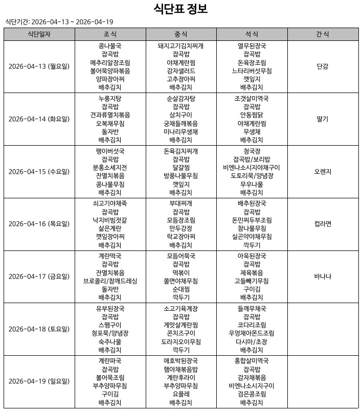식단표(26.04.13.~26.04.19.) 입니다