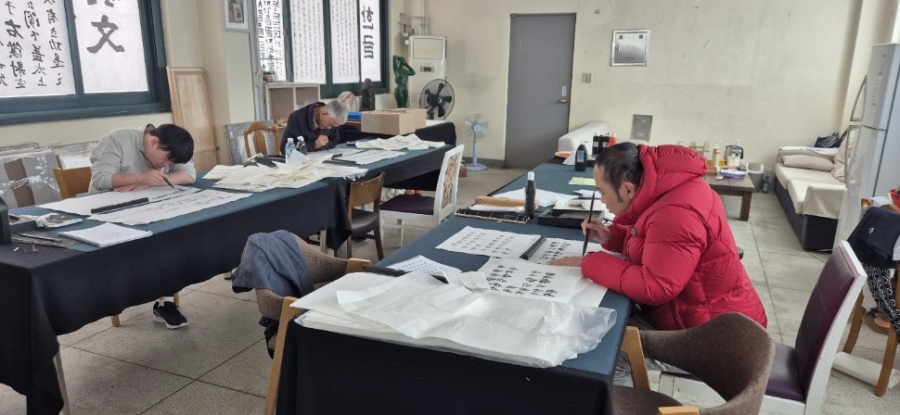 매주 1회, 김** 님과 정** 님과 이** 님께서는 홍산에 위치한 서예학원에 다니고 계십니다. 차분한 마음으로 서체를 익히며 열심히 연습에 임하고 계시고, 갈수록 실력이 눈에 띄게 늘고 있어 멋진 서체가 더욱 돋보입니다!