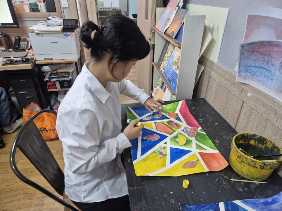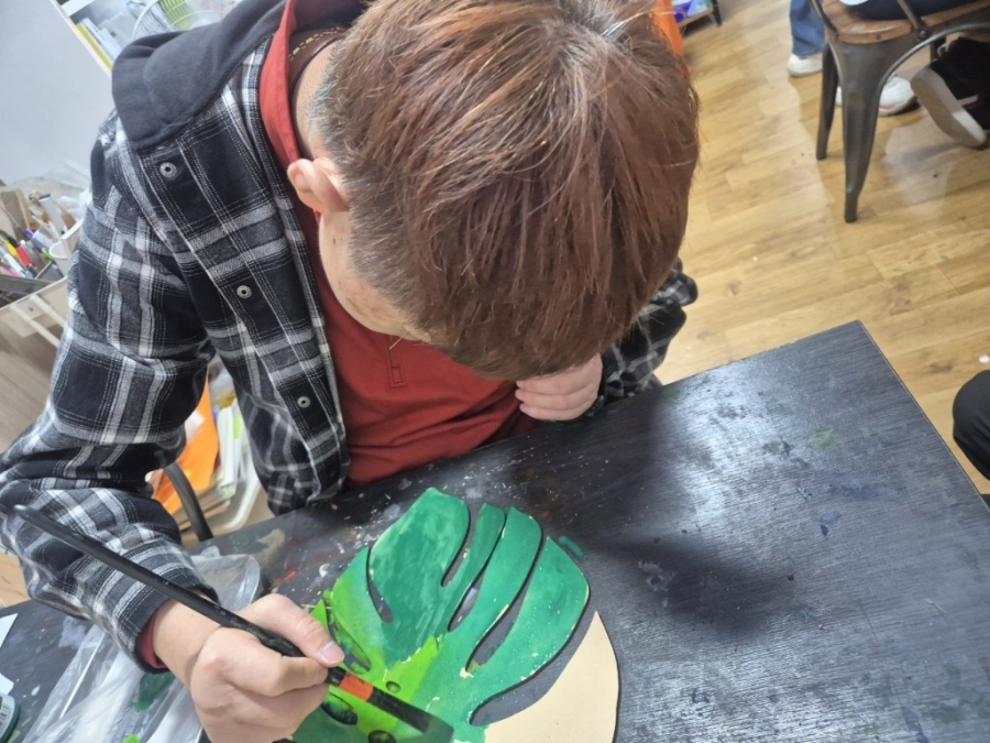 매번 미술 선생님께서 새로운 도안을 준비해 주셔서 입주자분들의 미적 감각을 일깨워 주시고 있어요. 다양한 미술 기법을 익히며, 여러 가지 방법으로 그림을 그리는 재미도 느끼고 계십니다.