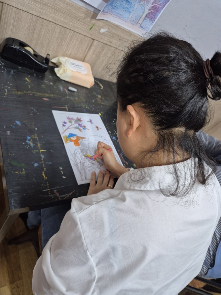 다양한 미술 기법을 익히며, 여러 가지 방법으로 그림을 그리는 재미도 느끼고 계십니다.
