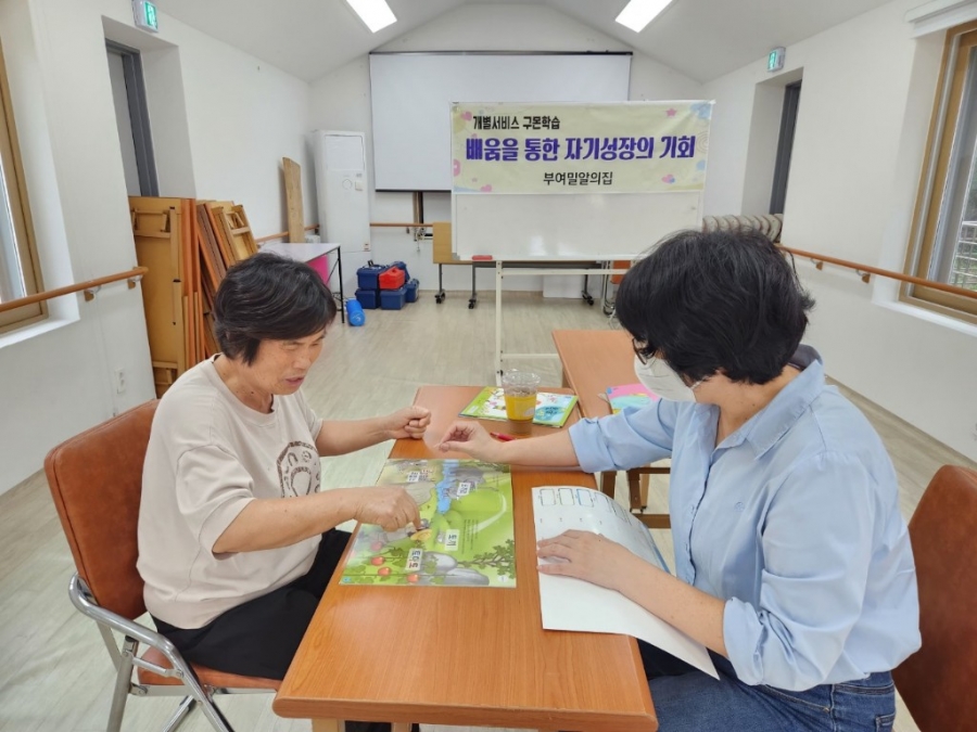 구몬학습 프로그램은 격주로 진행되며, 입주자분들께서 한글과 수학을 배울 수 있도록 지원해드리고 있습니다.