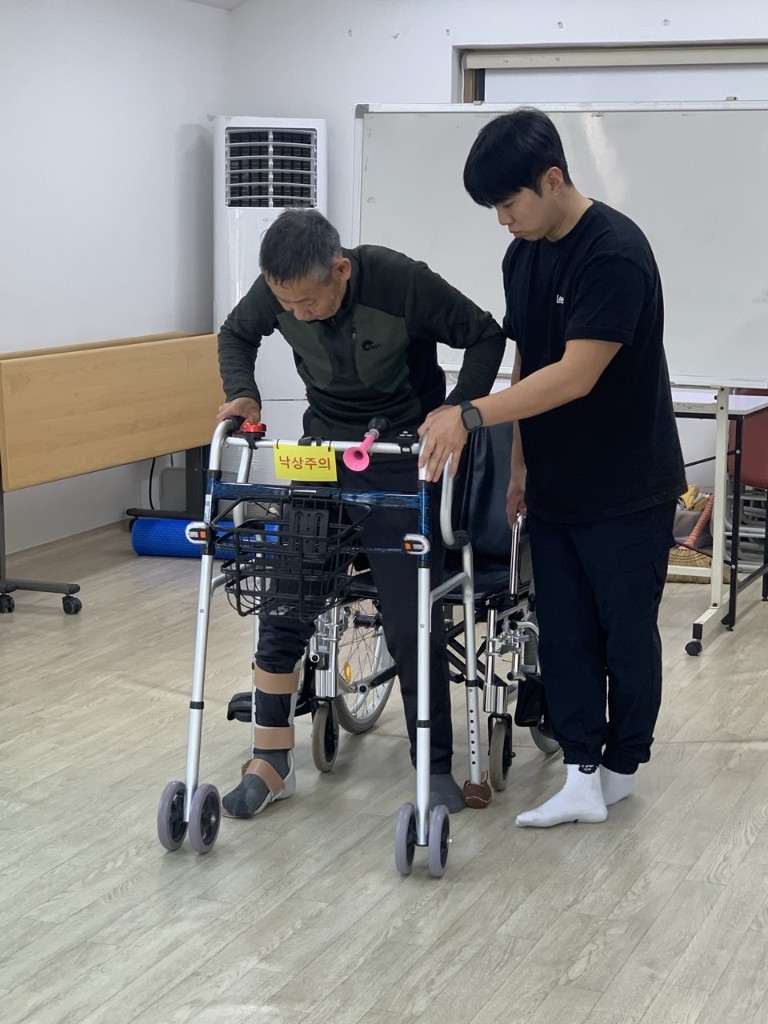 전** 님은 전신 운동을 통해 근력을 강화하는 재활치료를 받고 계시고,