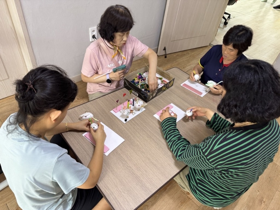 이** 사모님께서 방문하시어 미술 재료를 가져와 주셨고, 이를 활용해 입주자분들과 원내에서 미술활동을 진행하였습니다.