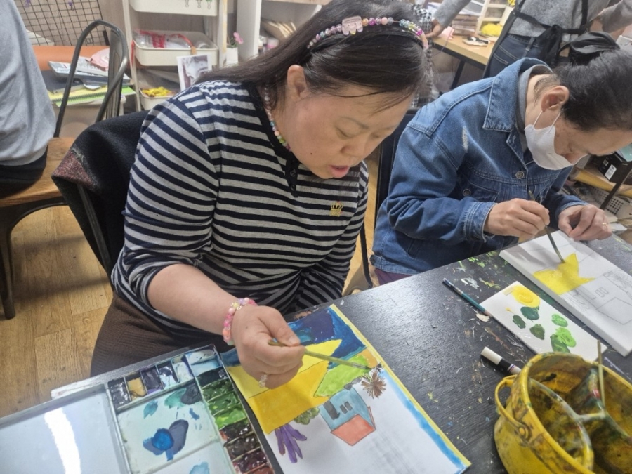 매주 수요일과 목요일에 입주자 정**, 천**, 윤** 님이 미술학원에서 진행되는 미술활동에 개별서비스로 참여하고 계십니다.