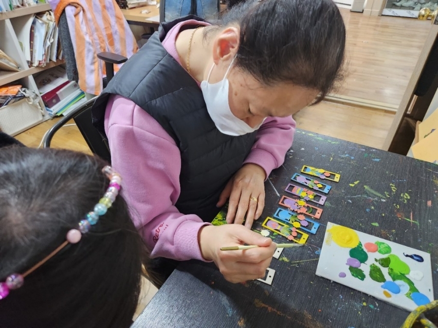 어떤 색을 선택할지 한참을 고민하시던 정**, 윤**, 천** 님은 작품을 완성하기 위해 끝까지 집중하는 모습을 보여주셨습니다.