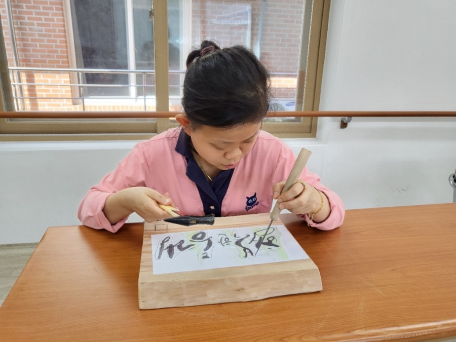 한 달에 한 번 진행되는 서각 프로그램 시간입니다.